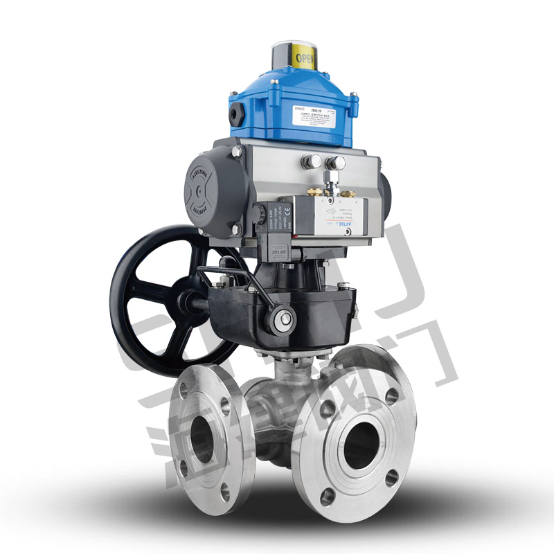 气动三通香蕉视频APP色情可分为L形气动三通香蕉视频APP色情和T形气动三通香蕉视频APP色情,L形(Q44F)三通香蕉视频APP色情用于介质流向的切换,能使相互垂直的两个通道连接;T形(Q45F)三通香蕉视频APP色情用于介质分流、合流及流向切换。T形三通可以使三个通道相互连通或使其中的两个通道连通。三通香蕉视频APP色情一般采用两阀座结构,亦可根据用户要求采用四阀座结构。